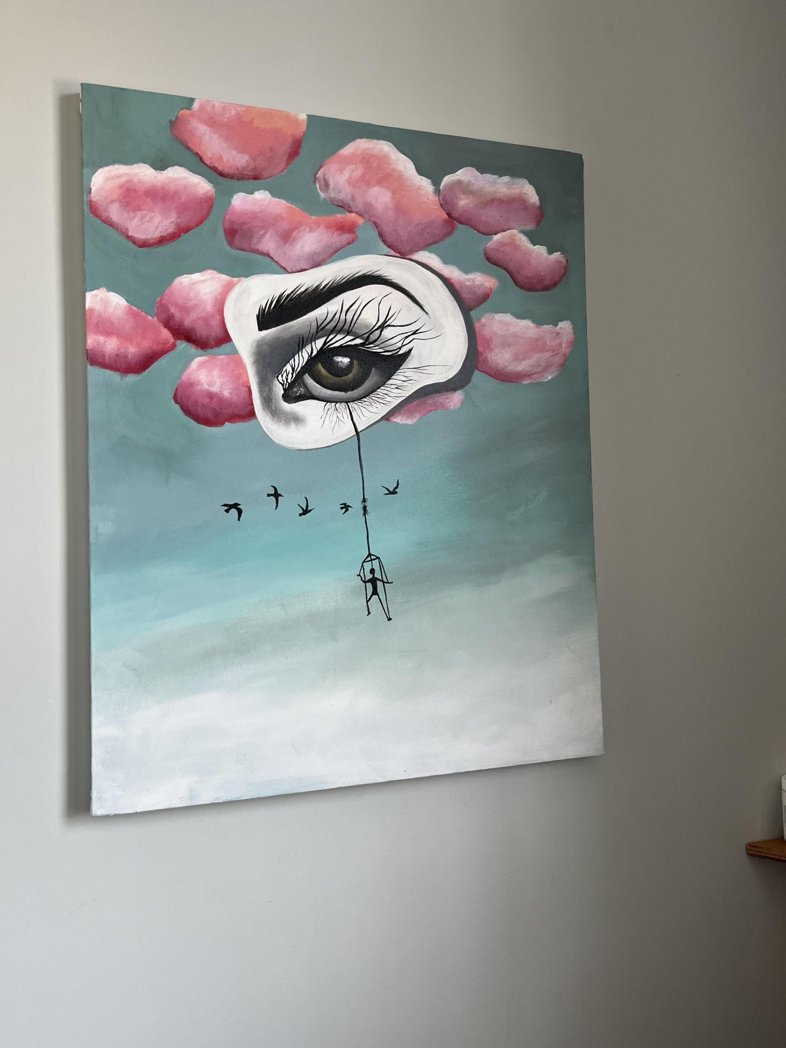 I do these eye paintings about mental health. I am currently working on a series of 40 paintings. Twenty are mental health conditions and twenty are healing practices. SOLD