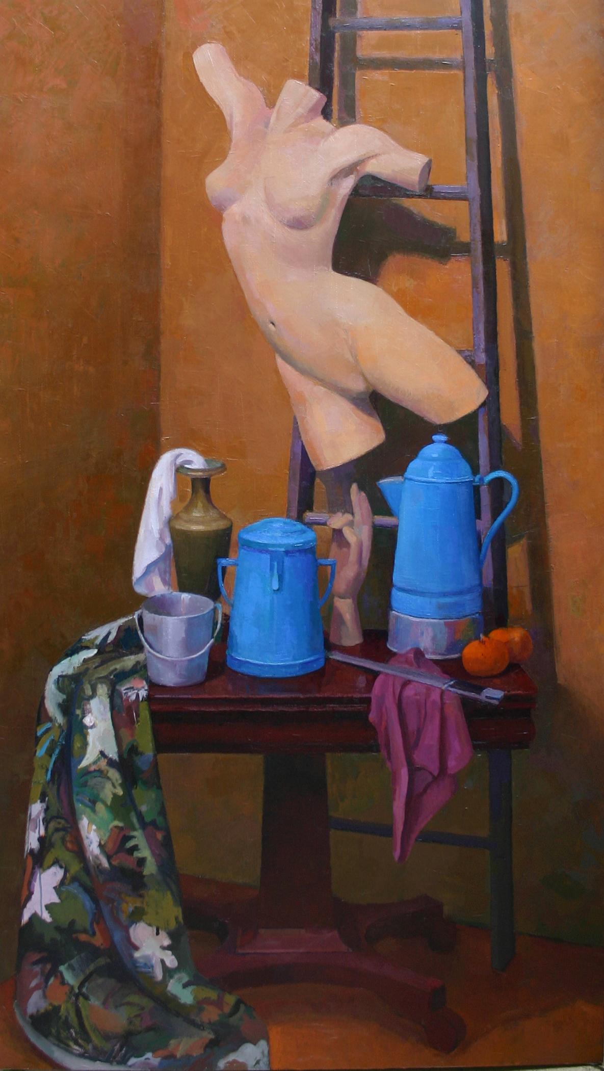I am predominately a studio painter. I feel most comfortable there. Being a perceptual painter and a collector of objects it is only natural that my main subject as a painter should be still life. My love of objects goes back to my childhood when the simplest of things would keep me looking and wondering for hours. There could be any number of reasons for the attraction, some of which would be size, shape, color, surface, and texture, etc., and if the form had moving parts all the better. The interest in the object has only gotten more intense with time. Now I find myself spending hours arranging these objects in some way so as to satisfy a need for harmony, design, and solidarity. The fact that many of the things I use have a history that I do not know is not lost on me. Almost all come from a different place and time. This only increases the attraction. The construction of the still life has a certain ritualistic quality to it. This lends itself well to the whole reverential thing that is building as the painting develops. One of my goals is to translate this to the viewer along with all the formal needs in painting. My other desires are to ensure an understanding of my place in a tradition that was born in the Renaissance, which includes a holistic reverence for nature and the mystery of life. I want to speak to my time as a modern artist steeped in the tradition of painting. I have a desire to create the world as it might be and to understand the underlying need for doing so and to be sympathetic to the desire to express this need with paint in the twenty-first century.Featured Work
