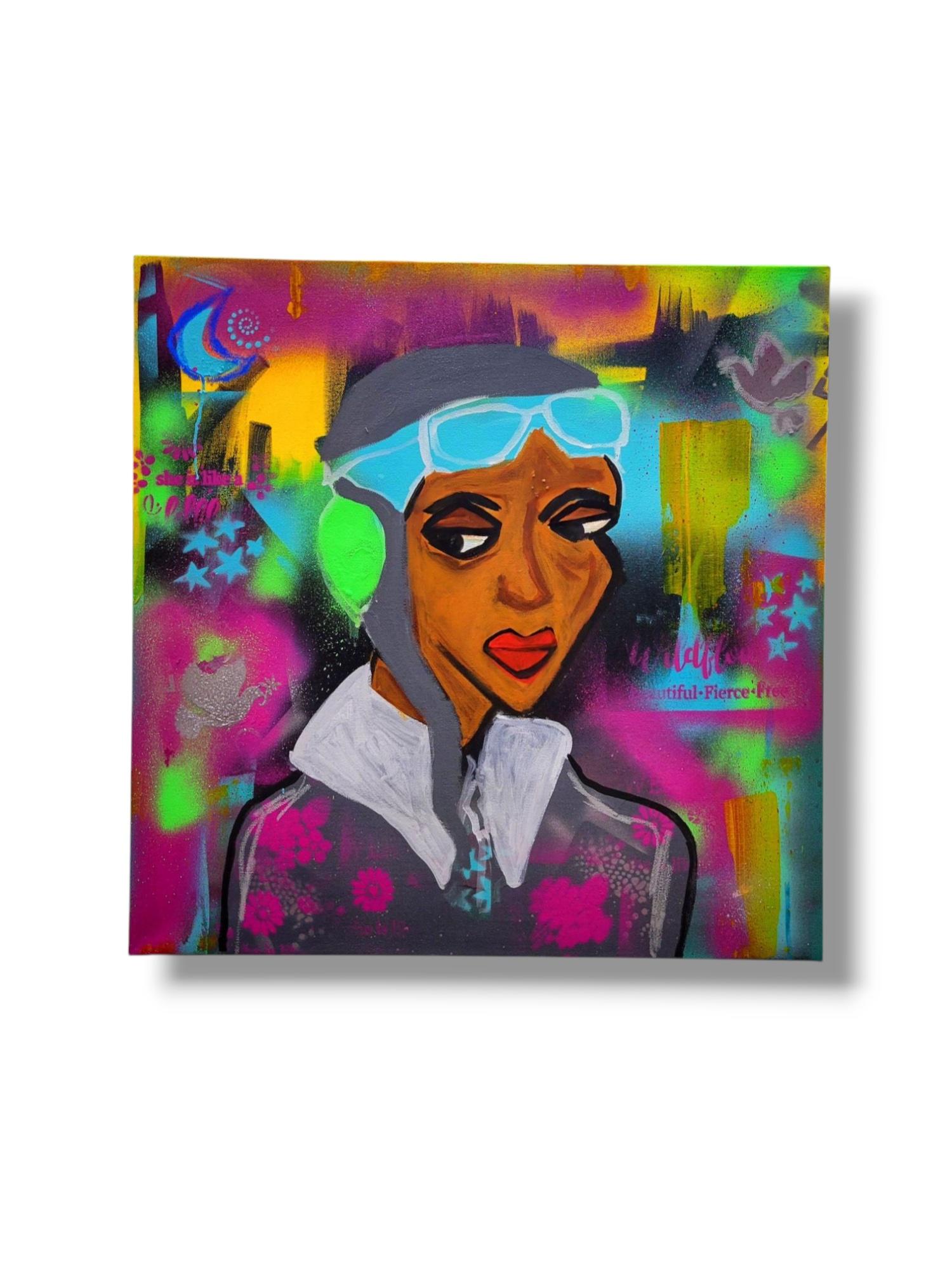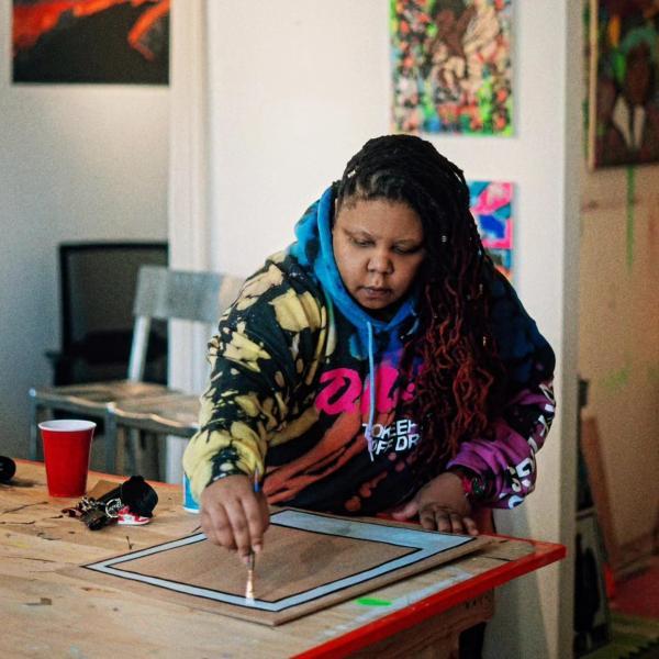 With vibrancy in color, a mixture of acrylics and mix media, self-taught graffiti folk artist Britnee Scotts paintings capture a spunky contemporary culture. Presenting subjects that reflects on race, politics, and urban culture her works share a multitude of narratives. Her bold lines, and color has shaped a unique style in today’s art culture. Paying homage to Elizabeth Catlett, Aminah Robinson, Robert Colescott, and a connection of the Harlem Renaissance greats Faith Ringgold, Lois Mailou Jones, Brit bring those historical movements to fruition. Britnee began presenting her artwork in cities all over the country and in 2022 landed her first collaboration with NFL home team Washington Commanders designing the first HBCU rally towel and showcased her art pieces in the FedEx Field Stadium. Having her first solo show in 2023 at Homme Gallery located in Washington, D.C. titled “Street Code”. Britnee was able to express her experiences growing up in an urban community. As a Southeast, Washington, D.C. native Brits focus is to “Be the change she wishes to see in the world”, that will allow people to change the stigma that’s placed on how people view Southeast, D.C. and strive to be able to advocate through art for her city.During her spare time, she’s always studying and researching various artist from all over the world. She says, “taking random trips to museums provide her clarity and helps her overcome times when she is having an artist block.” It’s her self-care time to reflect, pay homage, learn, and gain knowledge from various artist who she describes as originators.Featured Work