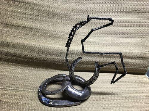 Found Metal ( Horseshoes, cut masonry nails, chain saw blade, found metal)