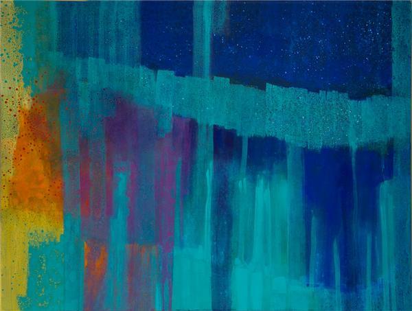 My ongoing interest is the changing feel and mood of the beach and its patterns. This painting is of the beach as the first morning light appears on the horizon and retreating surf leaves pattern in the sand.