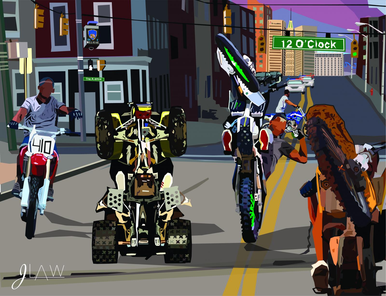 Exploring the sub culture of dirt bikes in Baltimore. An escape for many of the youth from the violence and ills of the Baltimore streets, yet this technically being an illegal activity. The juxtaposition and impact is profound.