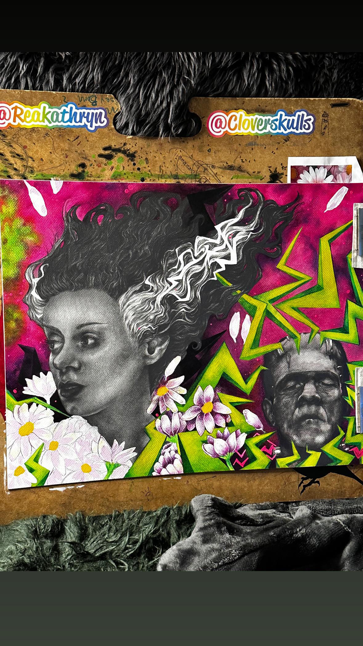 Graphite, color pencils, acrylic gouache, copic marker