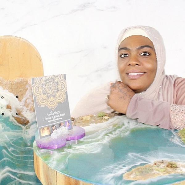 Amina J. Allen is the creative force behind MotherEarthEssence LLC, a Black Muslim woman-owned art business based in Baltimore, dedicated to transforming mix media resin art through the enchantment of glow in the dark pigments and 3D resin wave textures. A mixed-media artist, henna artist, and innovator whose work merges woodworking, resin artistry, and functional design to create one of a kind art, to inspire connection, expression, and healing within the community.Mother Earth Essence website https://www.tiktok.com/@motherearthessence?is_from_webapp=1&sender_device=pcrth… Mother Earth Essence website https://www.tiktok.com/@hennabymeeamina?is_from_webapp=1&sender_device=pc Mother Earth Essence website https://canvasrebel.com/meet-amina-allen/