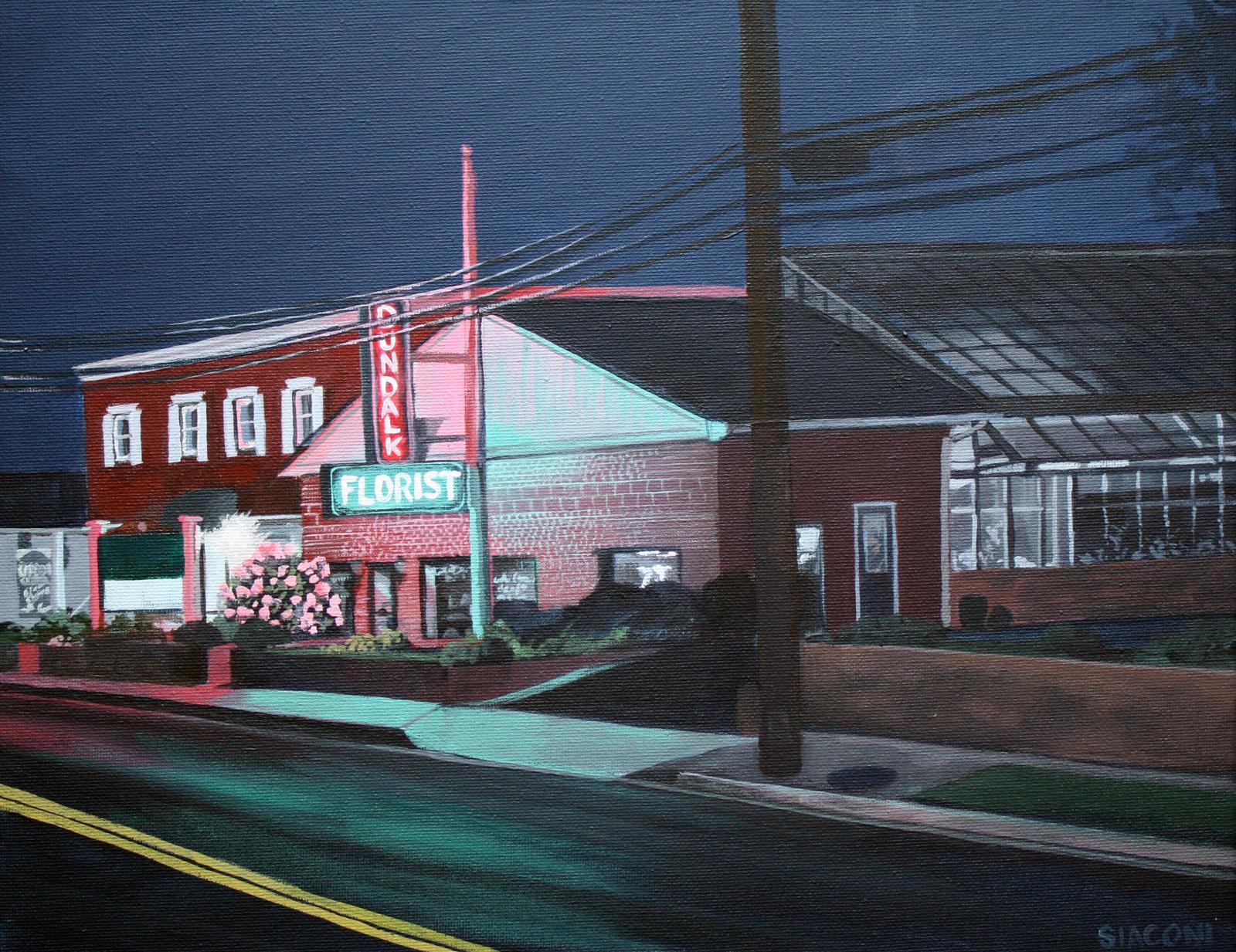 Samantha Iaconi explores blue collar American life. Her studio work is influenced by surrealism and American middle-class culture. Her Plein Air work captures landmarks and traditions of blue collar neighborhoods. The storytelling in her surreal work blurs the line between tangible reality and an alternative hyperbolic reality.