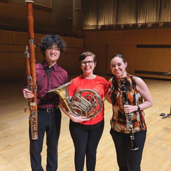 Explore a mix of classical, contemporary, jazz, and tango works of huge emotional breadth written for clarinet, horn, and bassoon trio. Three Reeds and a Horn performers include Natalie Groom (clarinet), Kat Robinson (horn), and Qun Ren (bassoon). In two short years, the trio has commissioned twelve works and has performed numerous premieres. The trio is a proponent of "flex" chamber music, music that can be played by many combinations of instruments, and has been a key ensemble in the promotion of Natalie Groom's Flexing the Canon project. The trio's concert programs are typically ~65 minutes without intermission, and programs explore themes such as nature conservation, mindfulness, overcoming grief, and finding joy in small and silly things.Artist's Statement