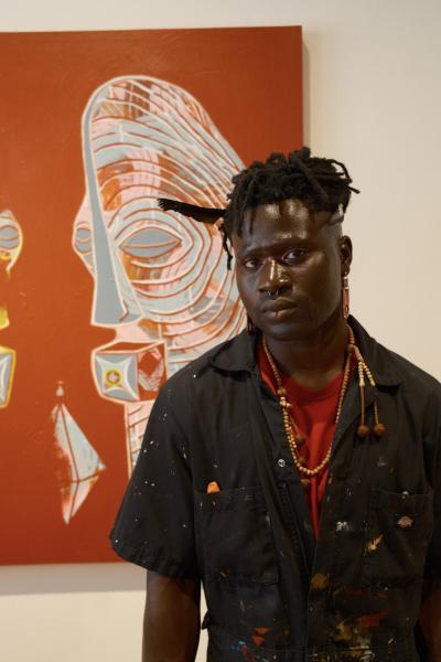 VILLAGER (b. A. Adekunle Adaranijo), they/them, is a Nigerian-born Contemporary Transdisciplinary Artist, Cultural Producer, and African Spirituality Practitioner. Moving across painting, collage, sculpture, performance, experimental film, installation, curation, and cultural facilitation, VILLAGER actively maps and queries the intersections of material memory & intelligence, Yorùbá knowledge systems, and postcolonial African identity as a dynamic topography of critical inquiry. VILLAGER's practice—deeply informed by their migration from Lagos, Nigeria, to the U.S. in 2013—traces the relational interplay between objects, bodies, and spaces, exploring how form, design, and content intersect to evoke experiential, spiritual, ancestral, and sensory possibilities, as well as elucidate social, cultural, and political resonances that transcend linear narratives.