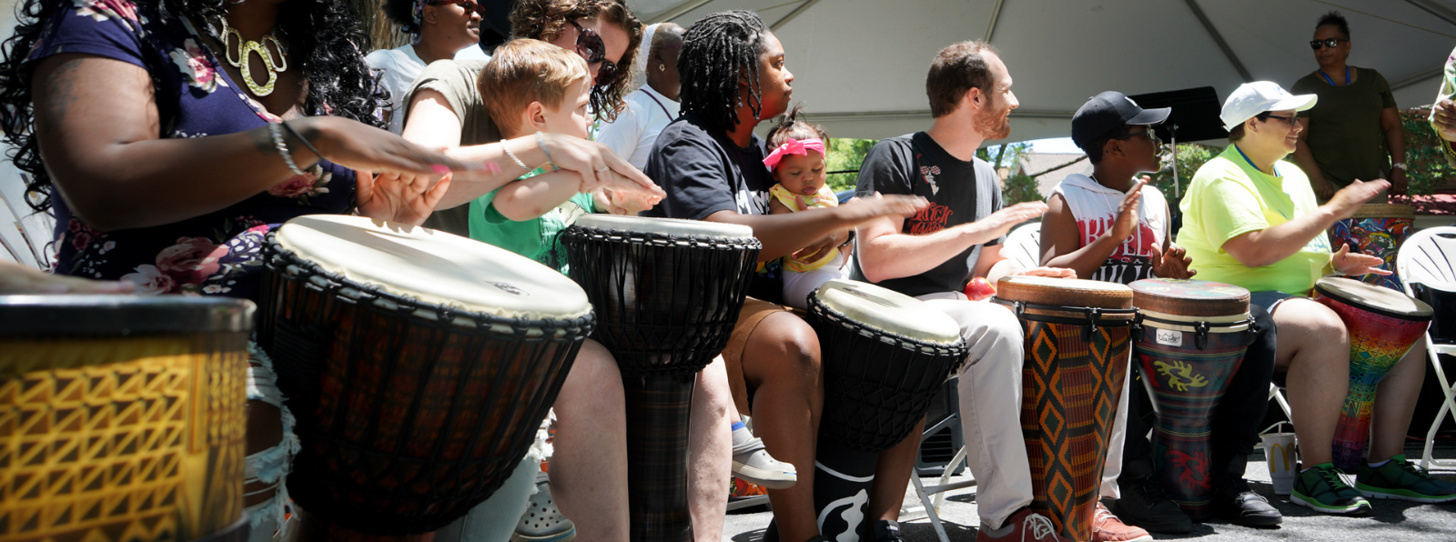 The Academy Art Museum’s annual Juneteenth Celebration included a drum circle lead by African percussionist Daande Lenol. (Talbot County)