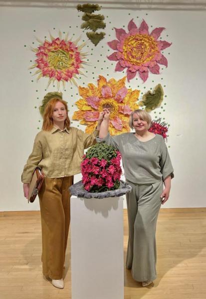 Wall sculptural art composition “Cactus Flowers” and freestanding sculpture “Blooming cactus”