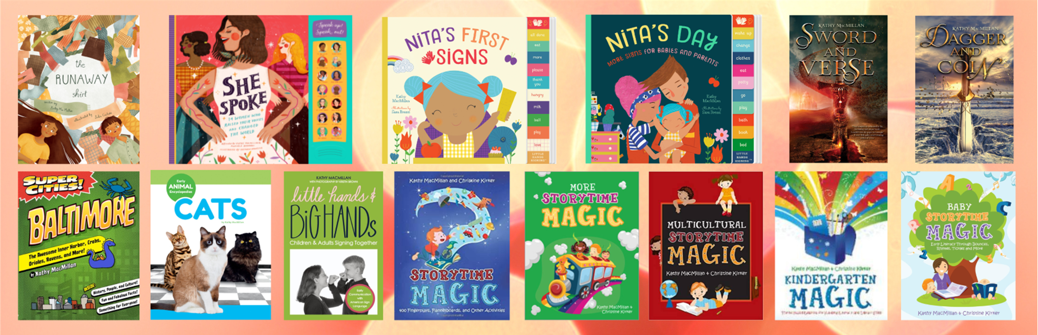 Kathy MacMillan (she/her) is a writer, nationally certified American Sign Language interpreter, librarian, and signing storyteller. She writes picture books, children’s nonfiction, middle grade and young adult fantasy, and resource books for librarians, educators, and parents. Kathy presents high-energy interactive storytelling programs for all ages that teach basic American Sign Language, workshops for writers, and trainings for library staff and educators. She lives in Baltimore, MD.Kathy MacMillan website Author Website Kathy MacMillan website School and Library Programs Kathy MacMillan website Workshops for Writers, Educators, and Library Staff